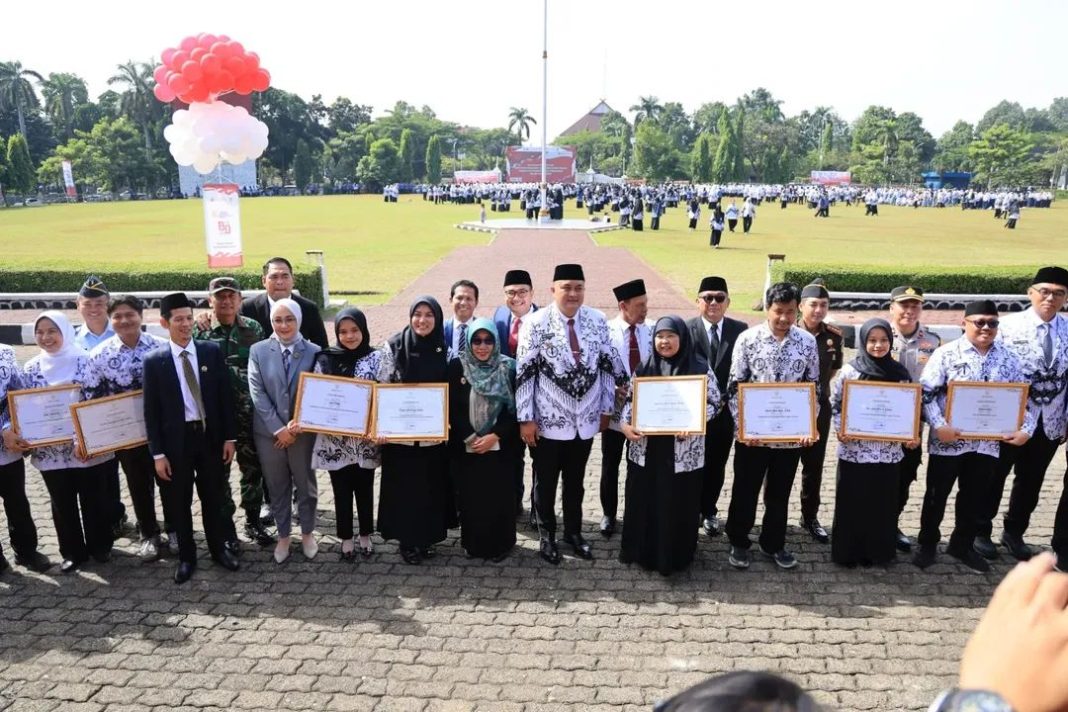 CIBINONG, MAJALAHNUSANTARA.ID – Pemerintah Kabupaten Bogor menggelar Upacara Peringatan Hari Guru Nasional 2025 sekaligus HUT PGRI ke-80 tingkat Kabupaten Bogor di Lapangan Tegar Beriman, Selasa (25/11/25). Upacara dipimpin langsung oleh Bupati Bogor, Rudy Susmanto bersama Forkopimda.